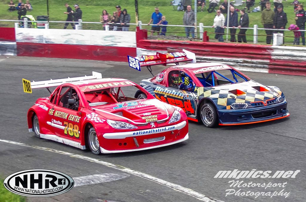 National hot rods are the top level of short track racing in the UK, with sophisticated lightweight production-car replicas whose engines produce around 240bhp. Photos: Mark’s Peugeot (788) in action at Hednesford yesterday by Martin Kingston