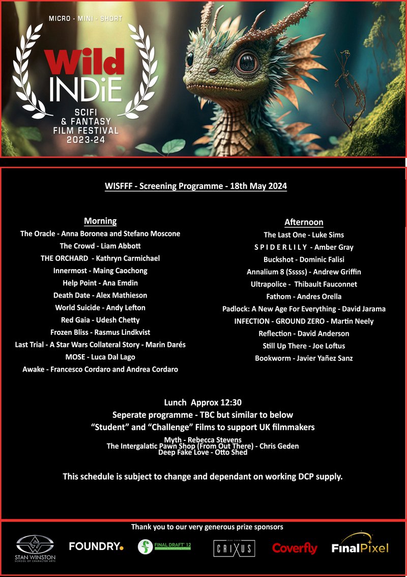 We're excited to report that our short film Annalium 8: Sssss will be screened as part of the official selection at Wild Indie Scifi & Fantasy Film Festival in London. The festival, which attracts around 400 entries from around the world, takes place at Genesis Cinema, Bethnal Green, on 18 May. Being part of the official selection - repesenting about 15-20% of the entry - means we are also competing for an award.