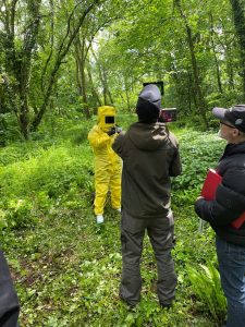 Filming took place in South Wales throughout last week under the guidance of director Andrew Griffin. We are producing the film in collaboration with Annalium Films from a script by Robert Lancey, telling of the aftermath of a catastrophe which has seemingly killed all animal life. The short film follows a surviving scientist in full hazmat suit who encounters a young girl in a forest – and she appears to be healthy and well…